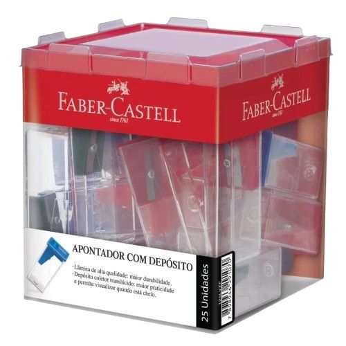 Desc.: Apontador c/Depósito Ref.125LVZF Cores Azul, preto, vermelho e rosa Ref.125LVZF Cod. Fab.: 125LVZF Material/Modelo: Tamanho: Capacidade: Cor: Cores Azul, preto, vermelho e rosa Cod.Bar.Unitário: 7891360629573 Marca: Faber Castell QTD por pacote: Cod. Bar. pacote: QTD por caixa: 25 Unidades Cod. Bar. Caixa: 7891360542322 QTD caixa Master: Cod. Bar. Caixa Master: Informações Adicionais: • Apontador com depósito plástico - prático e ideal para uso em sala de aula.