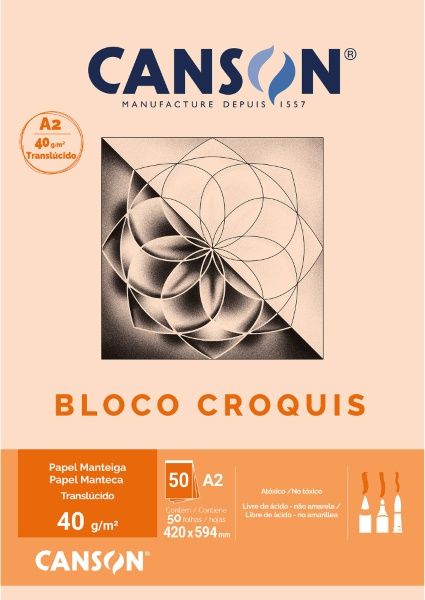 O Bloco Croquis Canson® é ideal para esboços e estudos de desenho, por isso é frequentemente utilizado nas escolas e cursos livres de Artes. Com uma textura levemente granulada, o papel manteiga tem uma ótima aderência da técnica e dá vivacidade aos traços. Ao desenhar, sua superfície exige maior domínio do traçado, o que auxilia no desenvolvimento e precisão do traçado.