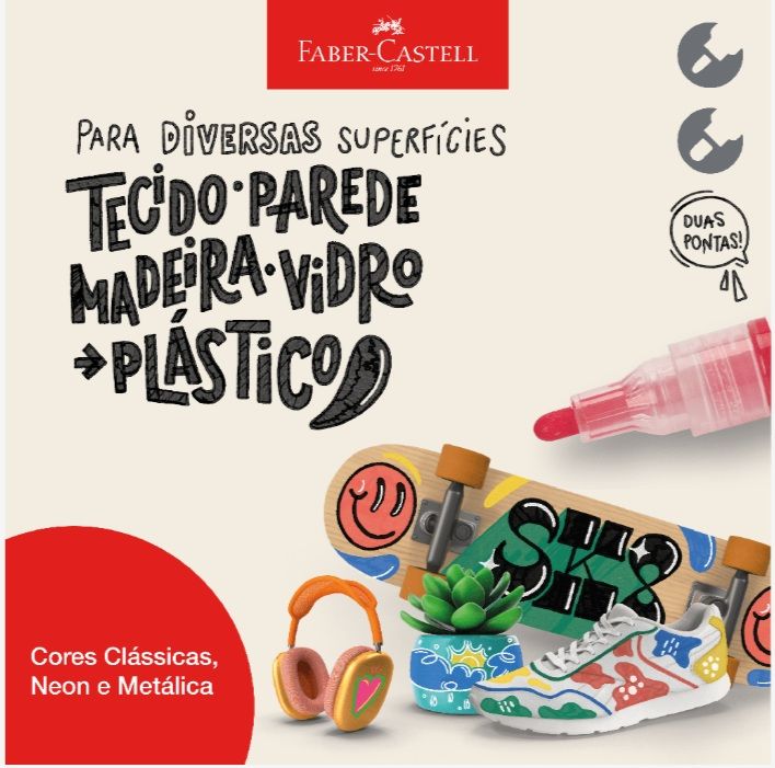 Desc: Pincel Marc MultiMark P. Dupla Ref:712 Preto Material/Modelo: Gramatura: Tamanho: Capacidade: Cor: Preto Marca: Faber-Castell QTD por Pacote/CX: 2 QTD Caixa Master: 1 pct c/2 Informações Adicionais: A linha de marcadores criativos MultiMark Faber-Castell, é a combinação perfeita para jovens, entusiastas ou amantes da arte, que buscam um produto de design moderno, simples e prático, capaz de dar asas a imaginação em uma infinidade de superfícies. É possível customizar peças e acessórios, criando obras únicas de forma rápida e fácil. Feito com os mais altos padrões Faber-Castell e qualidade excepcional em todos os componentes. As tintas são miscíveis (proporcionando uma cartela extensa de cores e técnicas), a base é água, elaborada com pigmentos para assim garantir uma cobertura superior e as pontas estruturadas para grande durabilidade e proporcionar firmeza na utilização (2 em 1, duas pontas, 1.0mm para traços finos e detalhes / 3.0mm ponta versátil e ideal para preenchimento). Especificações: Marcador Base Água. Multisuperfície. Mechanismo Shake&Pump. Duas Pontas: 1.0mm e 3.0mm. Ideal para artesanato. Perfeito para customização e personalização.